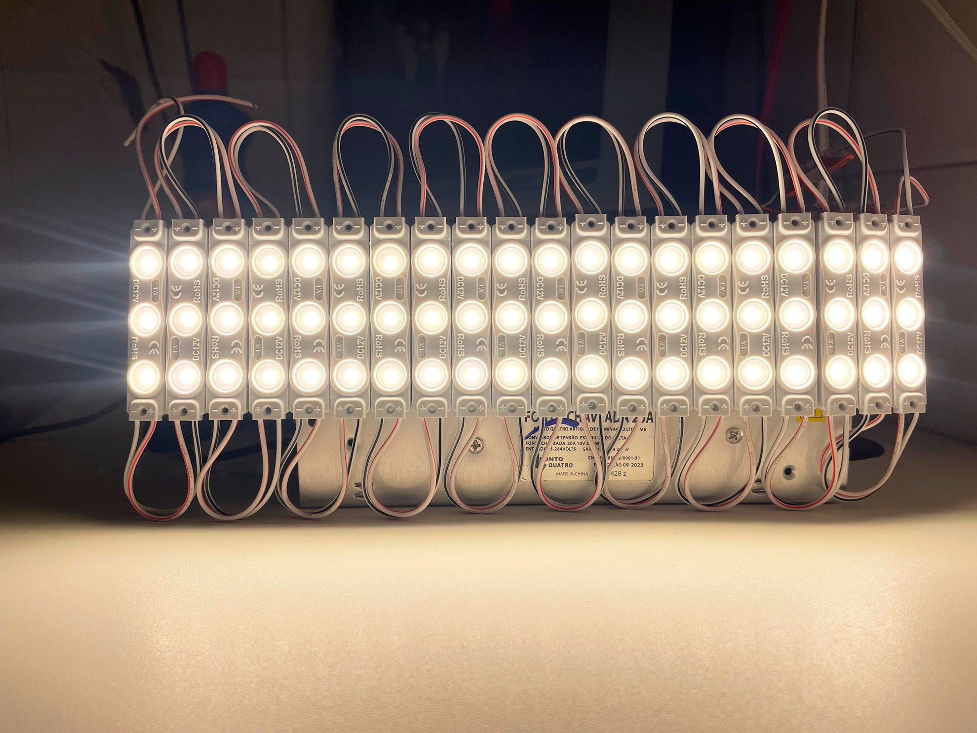 100 Módulos De Led Luz Neutra 4000k com lente 3 Pontos 1w IP67 12V IRC 80 Para Letras Caixas Comunicação Visual Ref : 3250 / 620