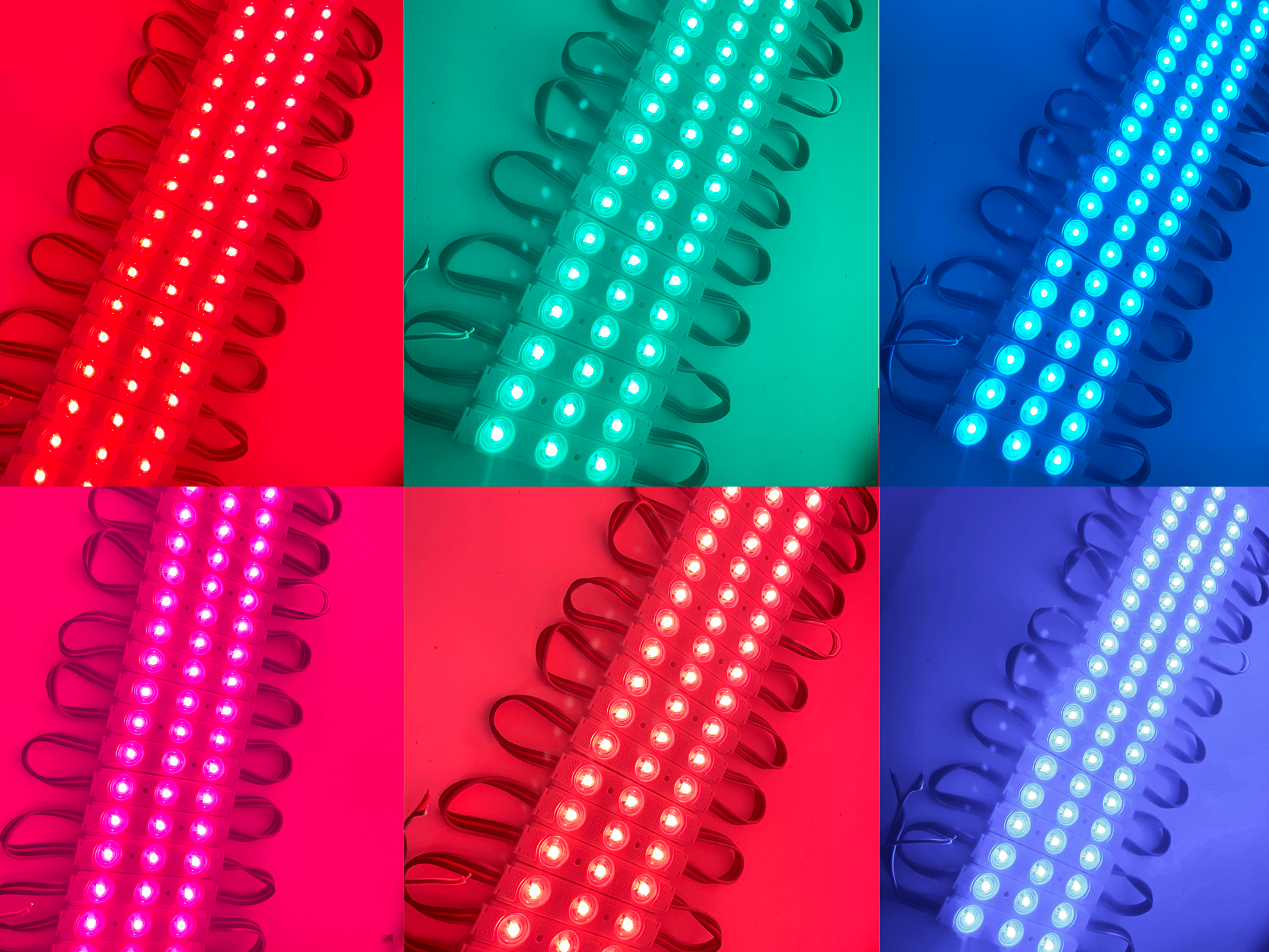 100 Módulos De Led RGB com lente 3 Pontos 0.65w IP65 12V Para Letras Caixas Comunicação Visual Ref : 3253 / 623