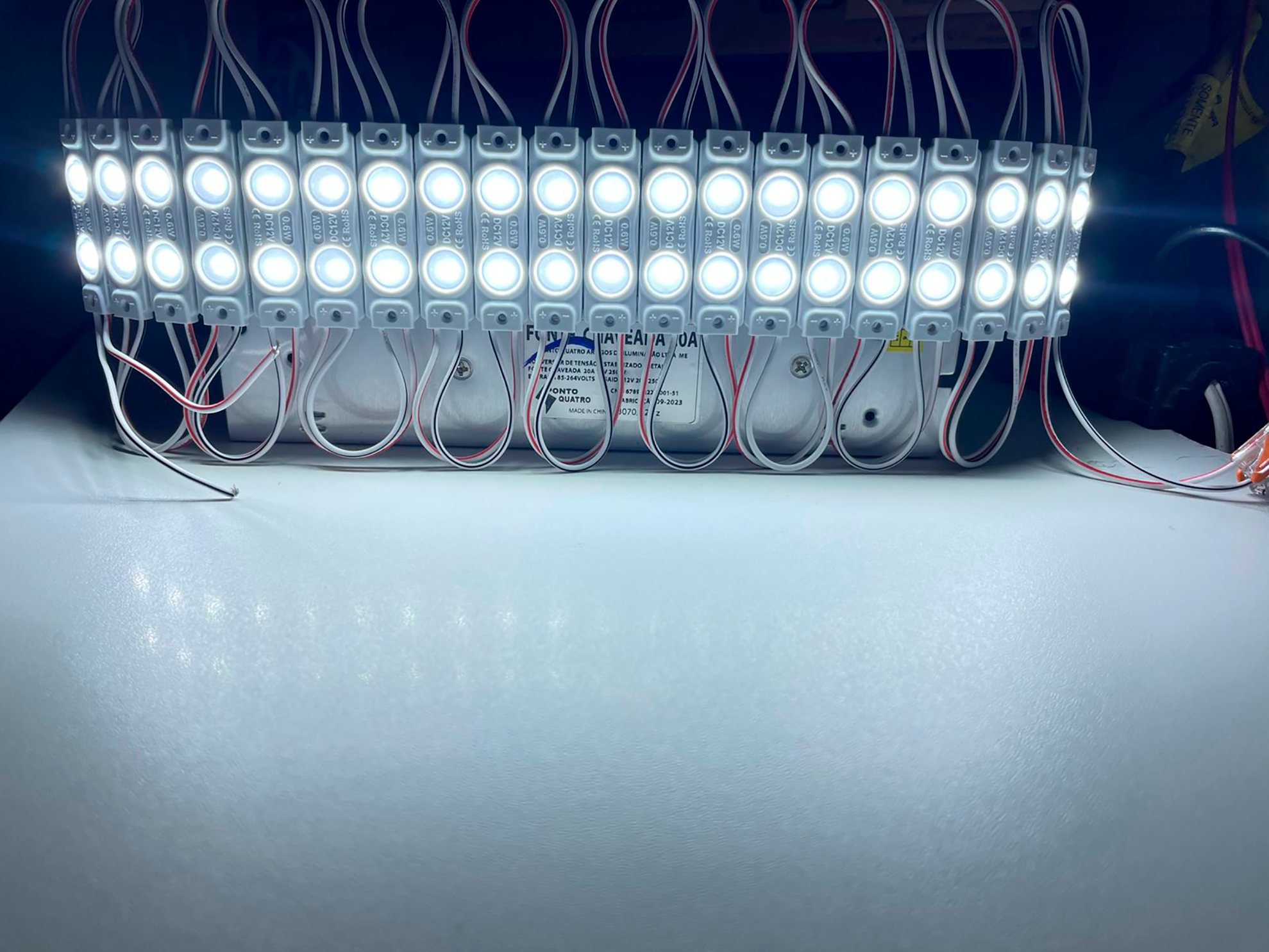 100 Módulos Led Luz Fria 6500k com lente 2 Pontos 0.6w IP67 12V IRC 80 Para Letras Caixas Comunicação Visual Ref : 3078 / 462