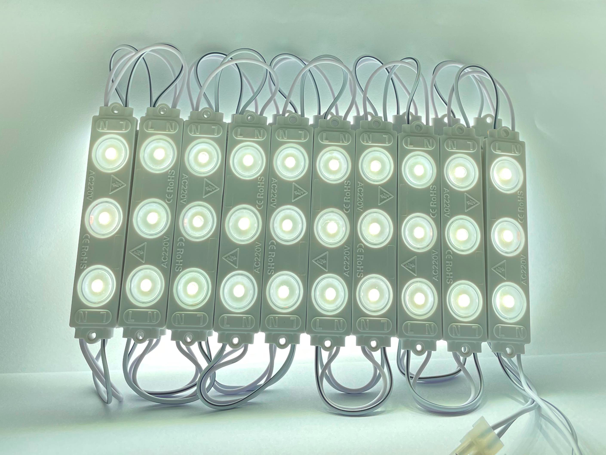 20 Módulos 220V Led Luz Fria 6500k com lente 3 Pontos 1.8W Chip 2835 IP67 IRC 80 Para Letras Caixas Comunicação Visual Ref : 3430 / 735