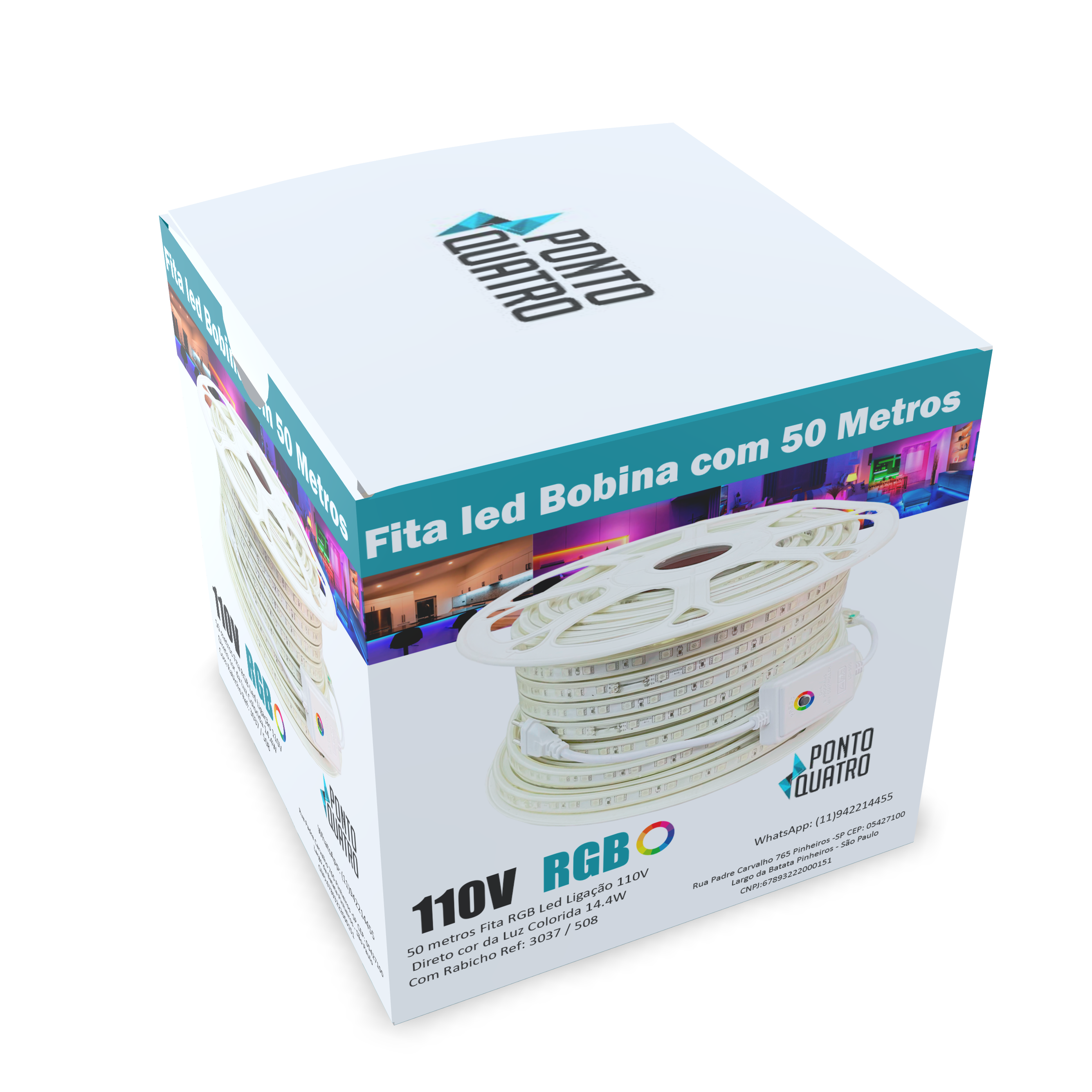 50 metros Fita RGB Led Ligação 127V Direto cor da Luz Colorida 14.4W Com Rabicho Ref: 3037 / 508
