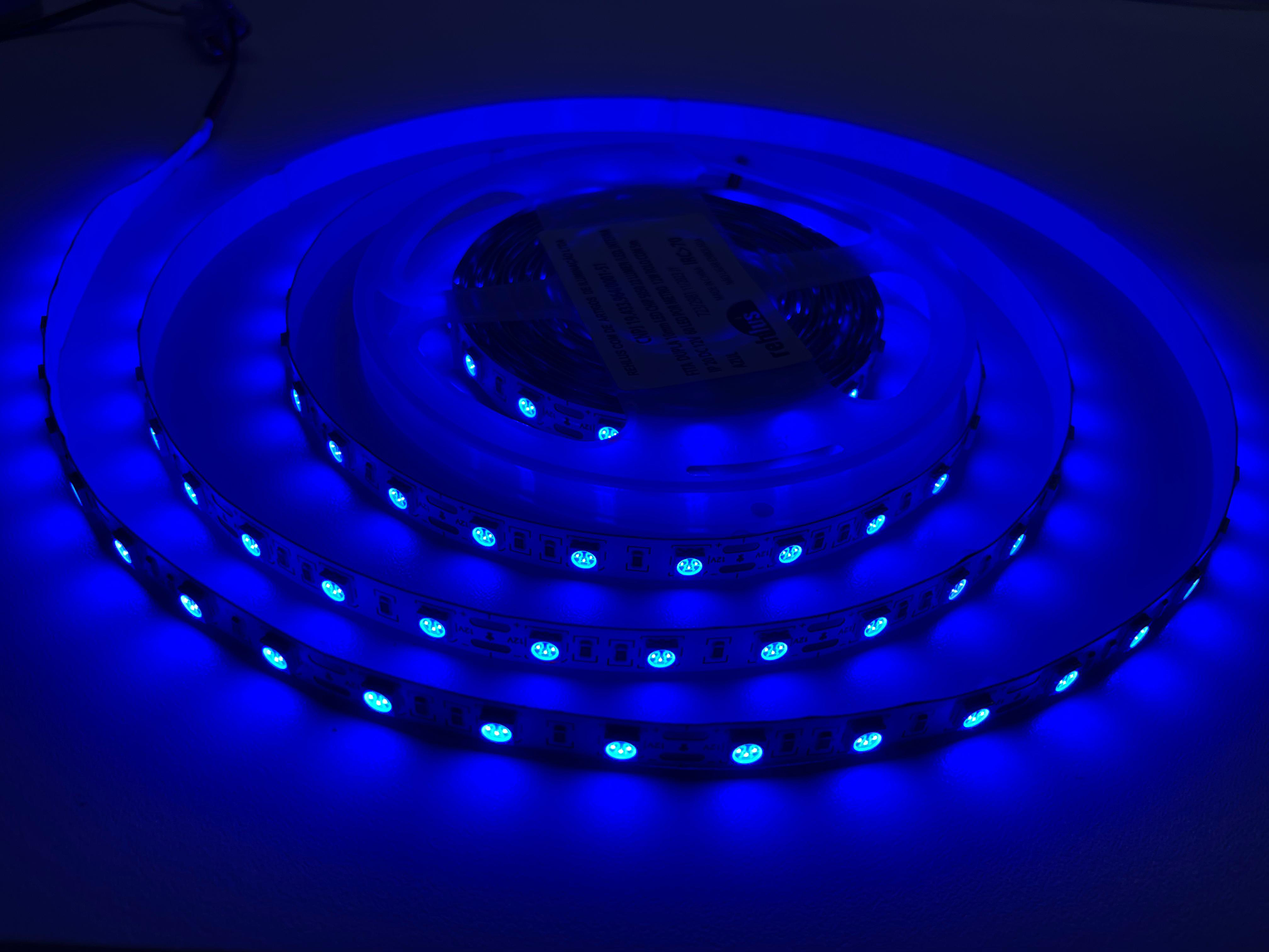 Fita led 12W/m Azul Alto Brilho Chip 5050 Cor fixa 12V 60 leds IP20 5mts Ref: 2981 / 723